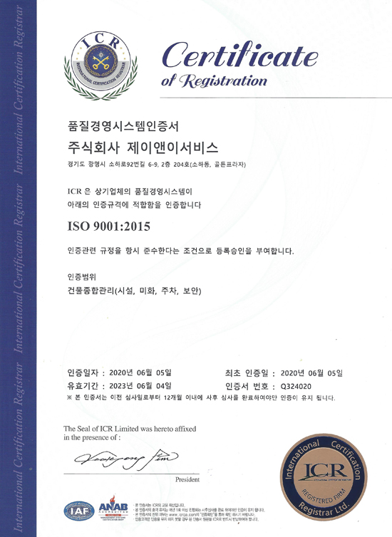ISO 9001 (품질경영시스템) 인증서