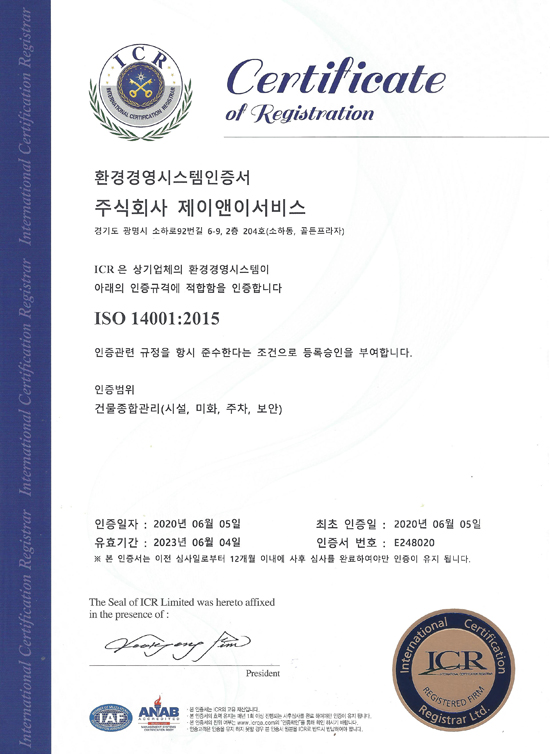 ISO 14001 (환경경영시스템) 인증서