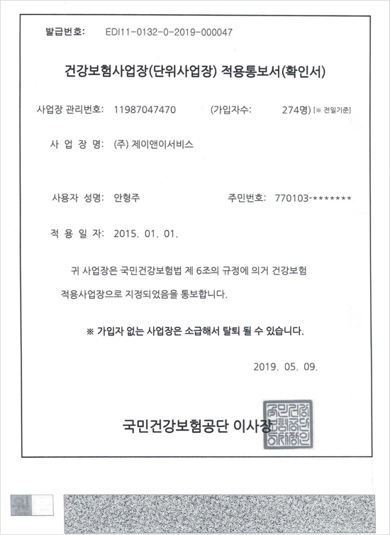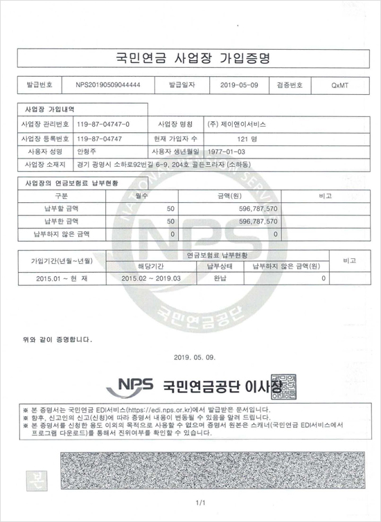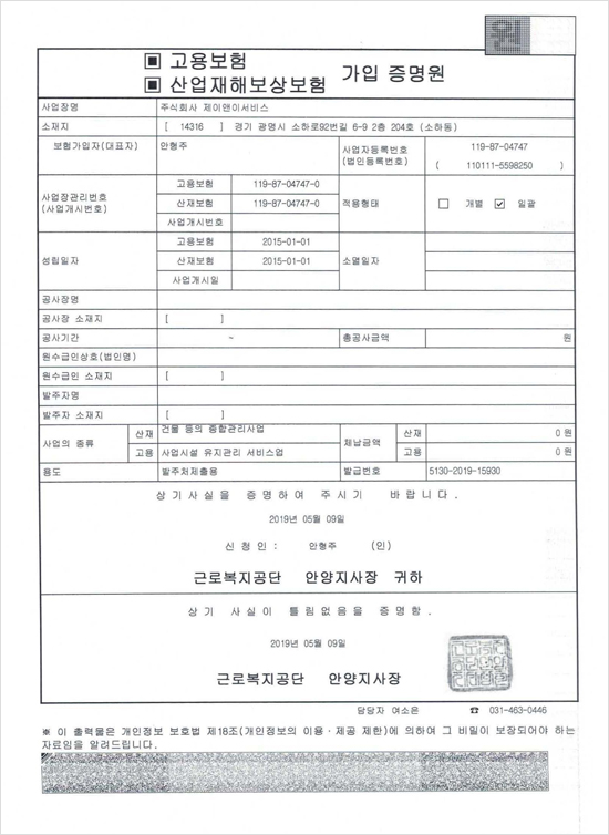 4대보험 가입 증명원_page1