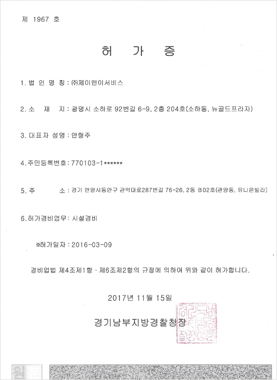 경비업허가증