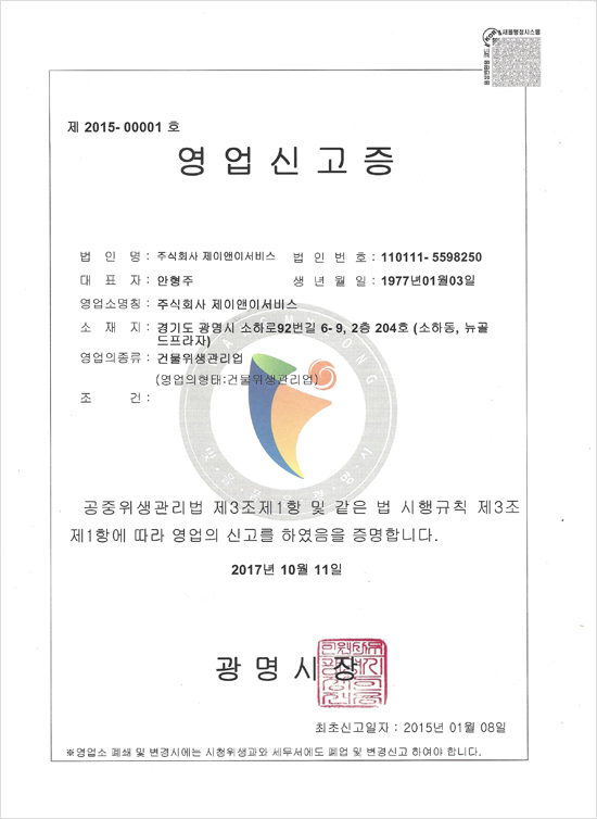 위생용역업신고증